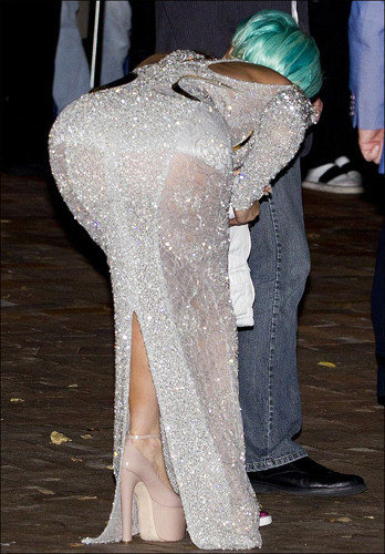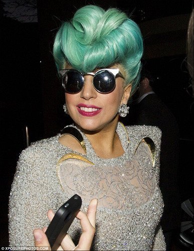 LadyGaga绿发亮相 撅臀与粉丝合影
