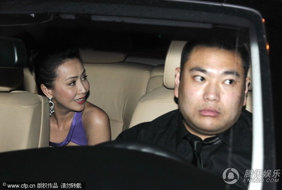 腾讯娱乐讯(CFP/图文)上海,日前刘嘉玲(微博)离开某酒店。刘嘉玲身着露胸礼服,在豪华轿车内东张西望,记者对车拍照刘嘉玲当做没看见,反倒是司机一直对着记者看。下车后,有多名黑衣保镖护驾,大姐大派头十足。