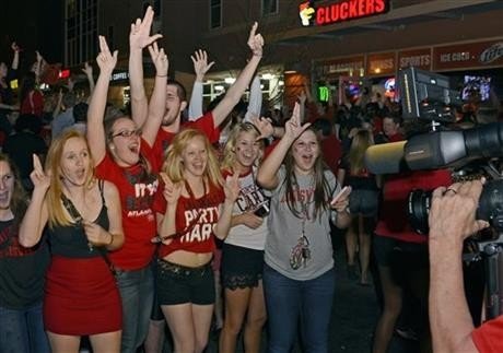 路易斯威尔大学赢得冠军后球迷们情绪激动