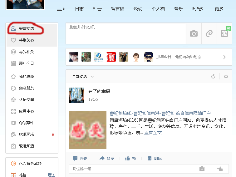 然后打开自己的QQ空间,点击好友动态,用QQ截图。将截图和您在曹妃甸热线网会员帐号发送到网站邮箱cfd163@qq.com,会员将免费赠送500积分,赠送消息会在即时通里提示。我们会在3-5个工作日处理,请网友耐心等候!活动日期:2015年1月1日-3月1日(注:会员仅限一次)
